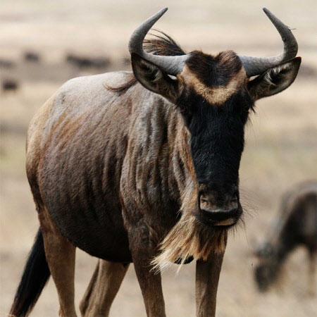 Sie haben einen großen Kopf mit einem breiten Maul. Das Haarkleid ist bräunlich oder bläulich schillernd dunkelgrau. Vom Hals bis zum Hinterteil befinden sich dunkle Querstreifen. Eine lange, schwarze Mähne bedeckt den Nacken bis zu den Schultern. An der Kehle wächst ein schwarzer Bart. Beide Geschlechter tragen Hörner, die an Rinderhörner erinnern, jedoch sind die der Bullen kräftiger. Der schwarze Schweif erinnert an einen Pferdeschwanz. Bei der Geburt sind die Kälber hell rötlichbraun und haben ein dunkleres Gesicht.
