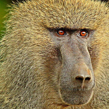 Beiden Geschlechtern gemeinsam sind die lange, hundeähnliche Schnauze, nahe zusammenstehende Augen, ein kräftiger Kieferknochen und das dichte, raue Fell. Die Fellfärbung variiert je nach Art und Geschlecht von silberfarben bei männlichen Mantelpavianen über gelb (Steppenpavian) und olivfarben (Anubispavian) bis zu bräunlich, zum Beispiel bei Bärenpavianen. Die Schnauze ist haarlos und schwarz oder (beim Mantelpavian) rosa gefärbt. Ebenfalls unbehaart ist das Gesäß; bei Weibchen tritt während der fruchtbaren Zeit eine ausgeprägte Regelschwellung auf, bei der sich der Afterbereich nach außen wölbt und oft leuchtend rot verfärbt.